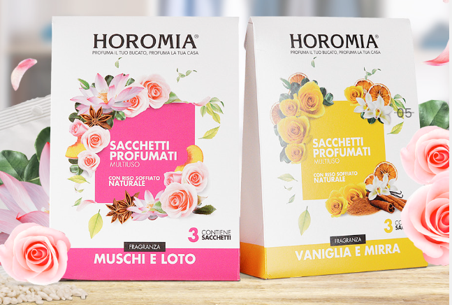 The uniqueness and intensity of Horomia fragrances now in Multipurpose Scented Bags.